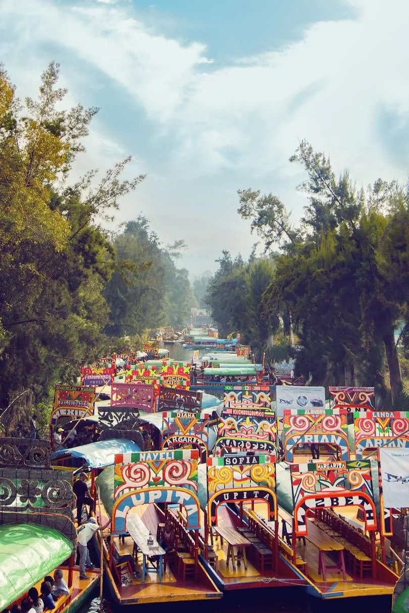 Party bus departs CondesaDF to Xochimilco for a canal tour + breakfast on a Trajinera (a boat)
